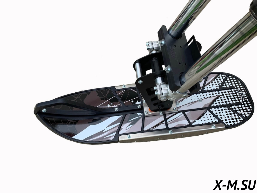 Тормоз интегрирован в раму, полностью изолирован от внешней среды, отсутствует контакт со снегом. Дисковый, гидравлический, двухпоршневой суппорт. Тормозная гидравлическая магистраль 1600мм, армированный тефлон. В комплекте поставляется полностью прокачанная тормозная система с установленной тормозной машинкой.