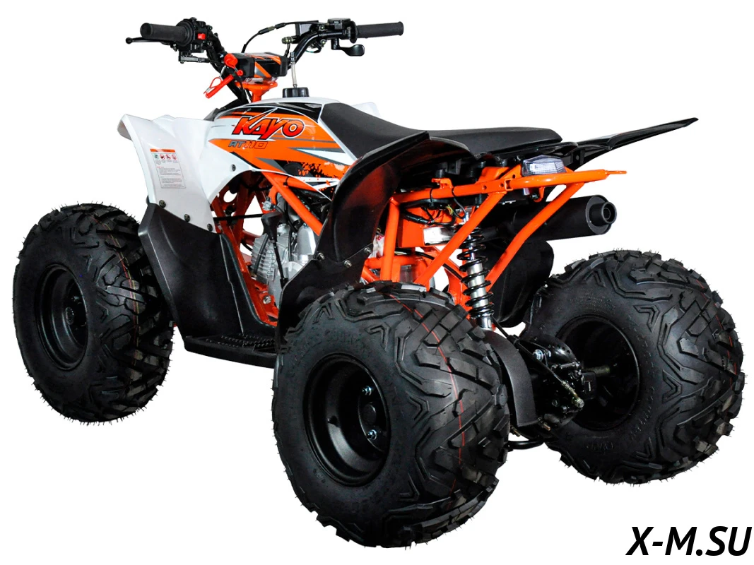 Квадрицикл KAYO AT110 – выносливая модель для освоения спортивной езды по бездорожью или помощи в хозяйстве. Хорошо подходит для детей и подростков, интересующихся поездками за пределами проторенных троп. Также подойдёт и для бытовых задач, а наличие ПТС позволяет использовать AT110 на дорогах общего пользования.