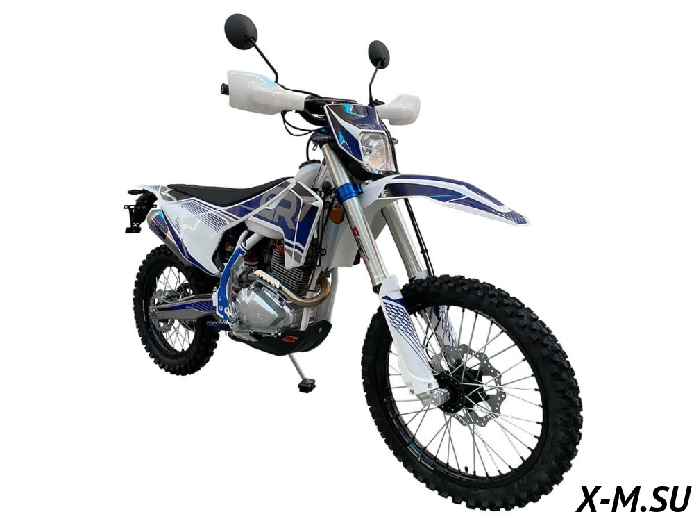 Полноразмерный эндуро мотоцикл с большими колёсами и алюминиевыми ободами — GR7 F300A (4T PR300 балансир) Enduro OPTIMUM. Это полностью сбалансированный и эффектный кроссовый мотоцикл, который оснащён надёжным и проверенным временем двигателем и с хорошей управляемостью и манёвренностью, а благодаря прочной конструкции, байк с лёгкостью способен преодолевать сложные участки бездорожья. Дизайн выдержан в умеренной стильной цветовой гамме и придётся по вкусу любому райдеру. Соотношение цены и качества выделяет эту модель среди конкурентов, а качественная сборка привлекает внимание райдеров.
