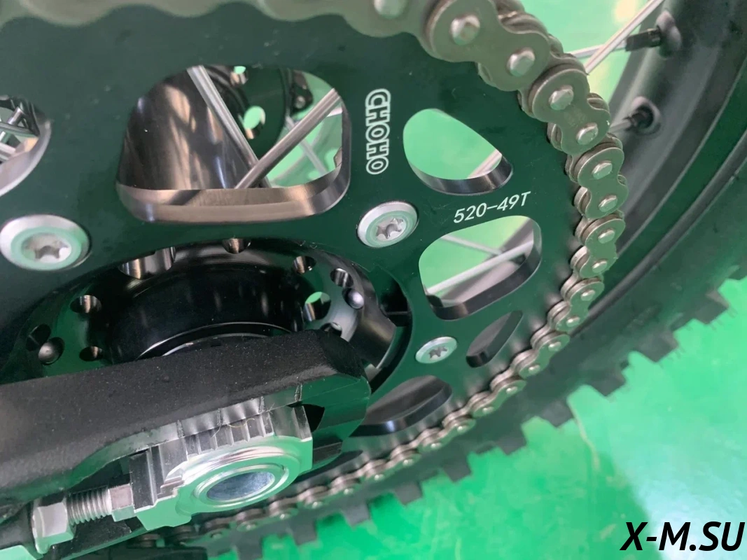 Пластик используется KTM2020 – очень прочный и распространенный, что делает его максимально возможным к обслуживанию. Руль IGP TwinWall 22/28 алюминиевый на всех моделях! Силиконовые грипсы Nibbi Racing – левая на замке, правая на короткоходной ручке газа Nibbi. Рычаги тормоза/сцепления – неломайки, из фрезерованного алюминия от CNC. Влагозащищенные кнопки старт/стоп на руле. Складной рычаг переключения передач, фрезерованный, из алюминия, от бренда PRO CAKEN. Лапка тормоза так же фрезерованная, алюминиевая. Самая легкая и прочная приводная цепь RK520MXZ уже установлена!